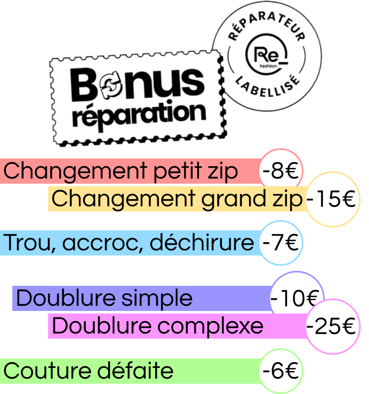 L’atelier est labellisé réparateur chez Refashion, ce qui vous permet de bénéficier de réductions sur vos réparations de vêtements.